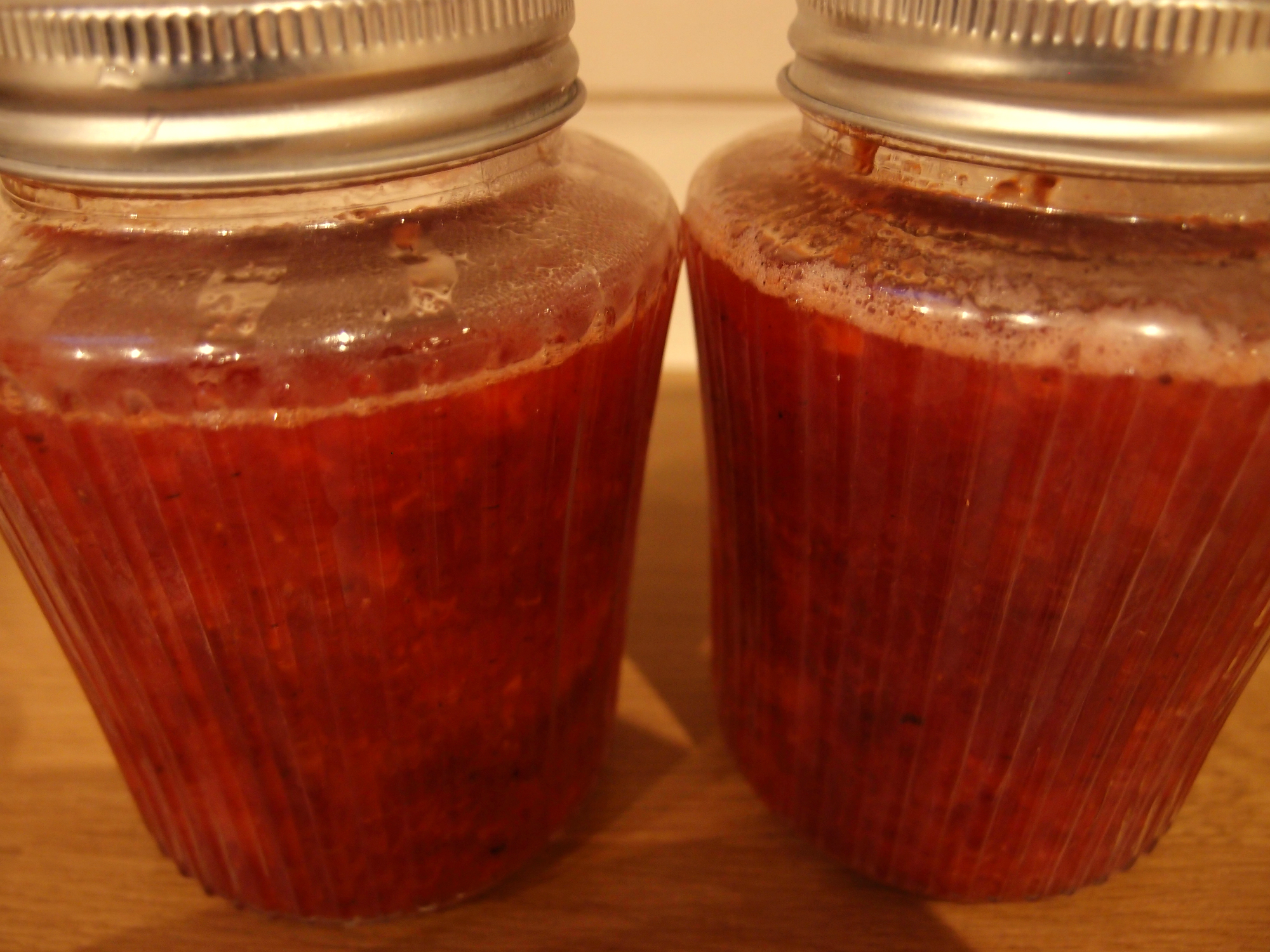This filled 2 x 500ml jam jars – not quite as expected from what the original recipe mentioned.