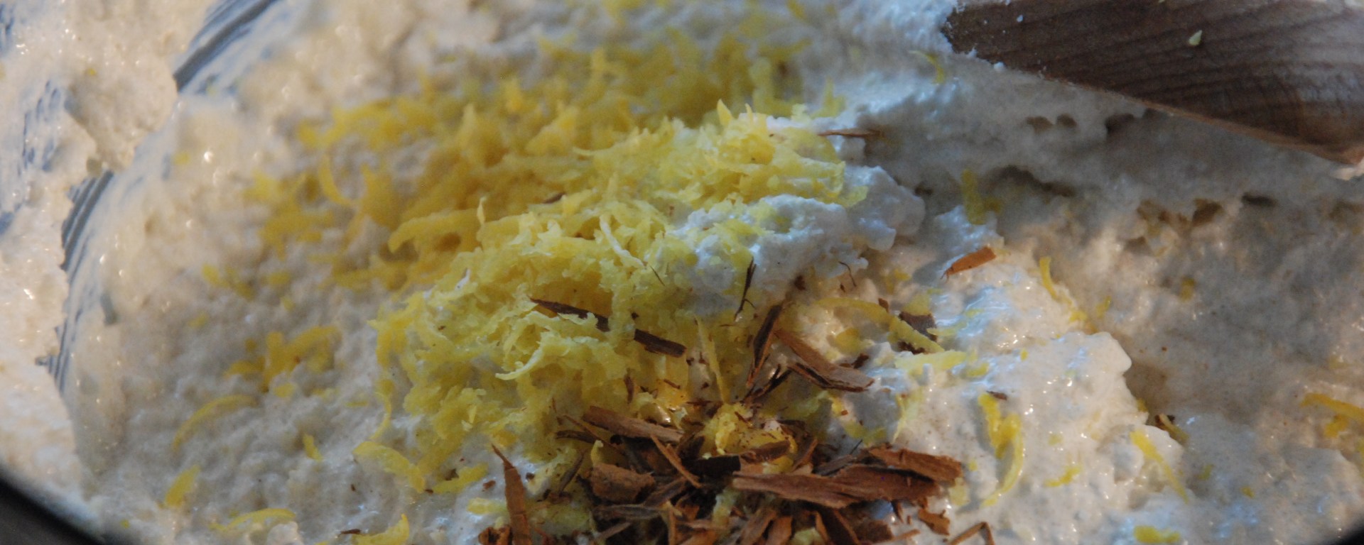 Step 2 – Add the ground almonds, cinnamon, lemon zest and combine the ingredients together.