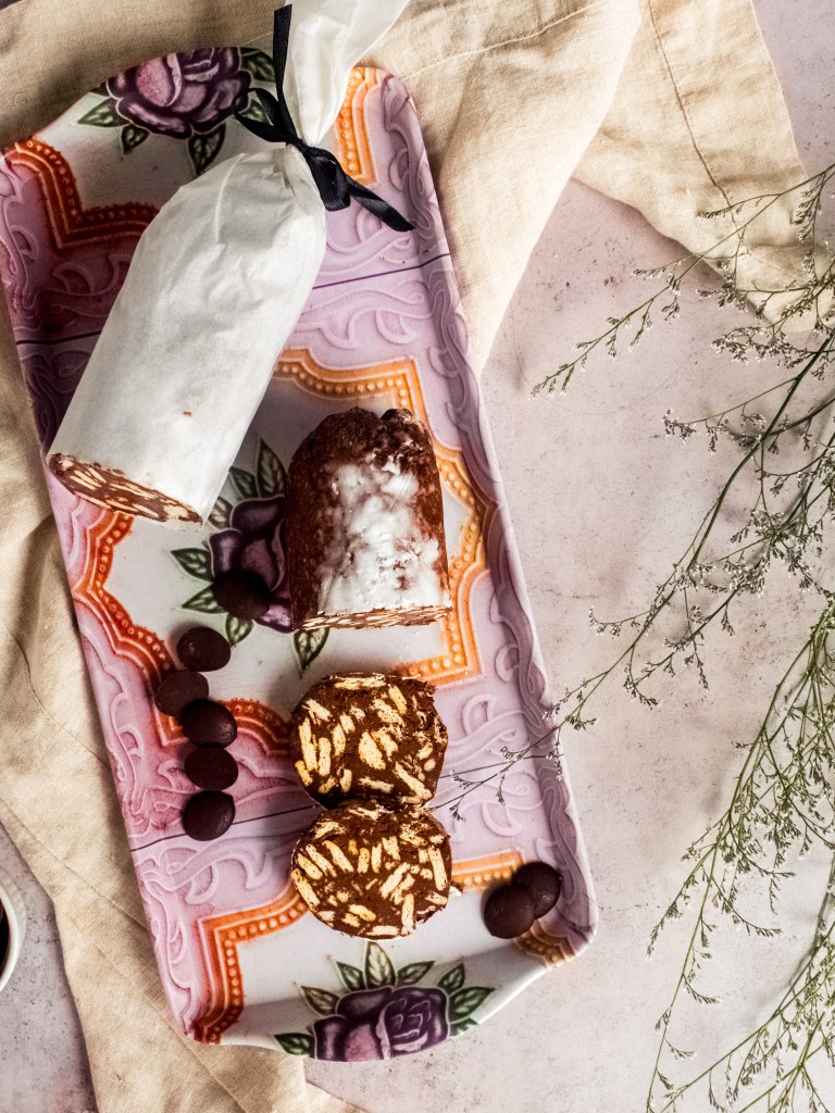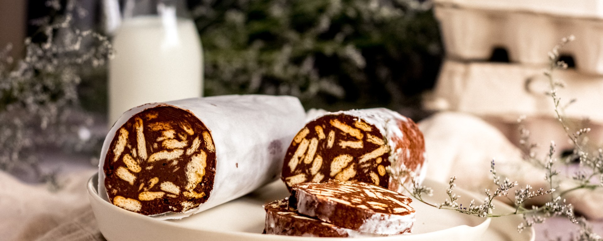 Chocolate Salami is a recipe that Italy has in common with many Mediterranean countries: Portugal, Greece, Romania, and there are version in Northern Europe as well. The first time I came across it I was in high school, my friend Manuela brought chocolate salami for an occasion, and I still remember the sensation I felt when I tasted the first bite. It seemed like such a brilliant invention, with its malty flavour, how come I had never tasted it before? From then on, Manuela’s genuine smile will forever be associated with this recipe.