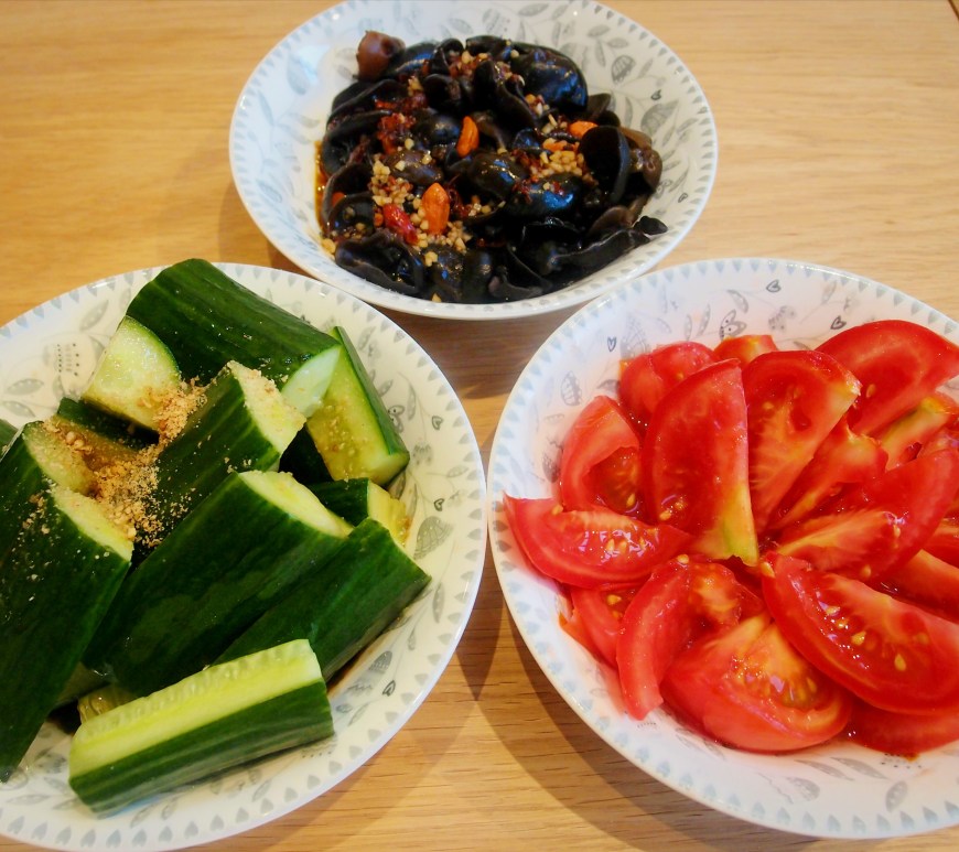When you think of summer food, salad usually comes to mind (got to love a good summer salad). They are, actually, just as common in Chinese cooking, although instead of having a mix of different leaves, Chinese veggie cold dishes are usually made from a single ingredient. These are all very easy to make, so here are three salads with different flavours! They can all be prepared in advance and left in the fridge for dinnertime – no need worry about wilting leaves. Continue reading “Three Chinese Summer Cold Dishes – Tomato Cucumber and Wood Ears”
