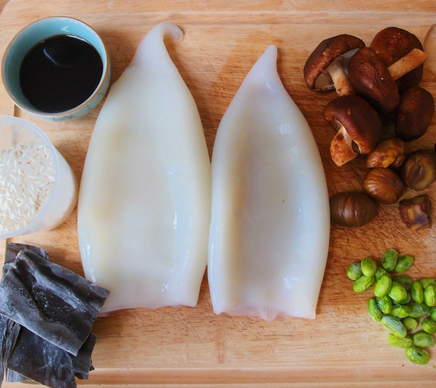 I’m a fan of Ikameshi (a Japanese dish from Hokkaido made from whole squids stuffed with glutinous rice), but as it’s part of a regional cuisine, it’s very difficult to find in restaurants here. There are many amazing recipes for Ikameshi, and this version I’m sharing is by no means the most authentic. I wanted to make it without using my rice cooker or pressure cooker, and more importantly, wanted to make the stuffing much heavier on elements other than rice.